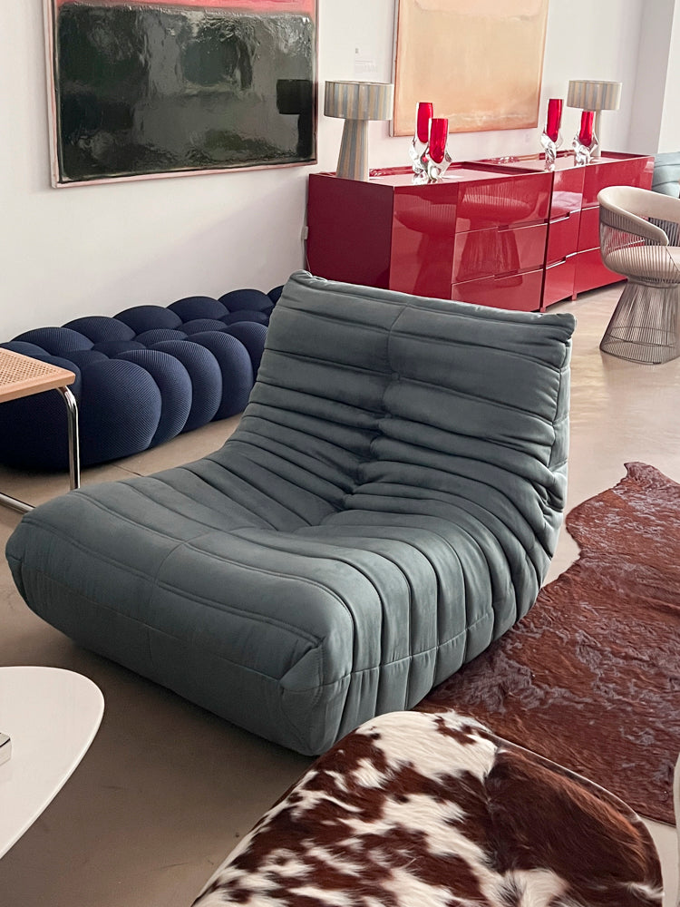 Puff Toggo, inspirado en el clásico sillón Togo de los años 70, este modelo combina diseño moderno y máximo confort. Su silueta orgánica y relajada se adapta con naturalidad a distintos estilos de interiores. Está realizado íntegramente en espuma de diferentes densidades, lo que le aporta una sensación mullida y envolvente, y tapizado en pana de pelo largo que realza su suavidad. Una pieza de fuerte presencia visual y carácter atemporal, pensada para descansar con total comodidad.