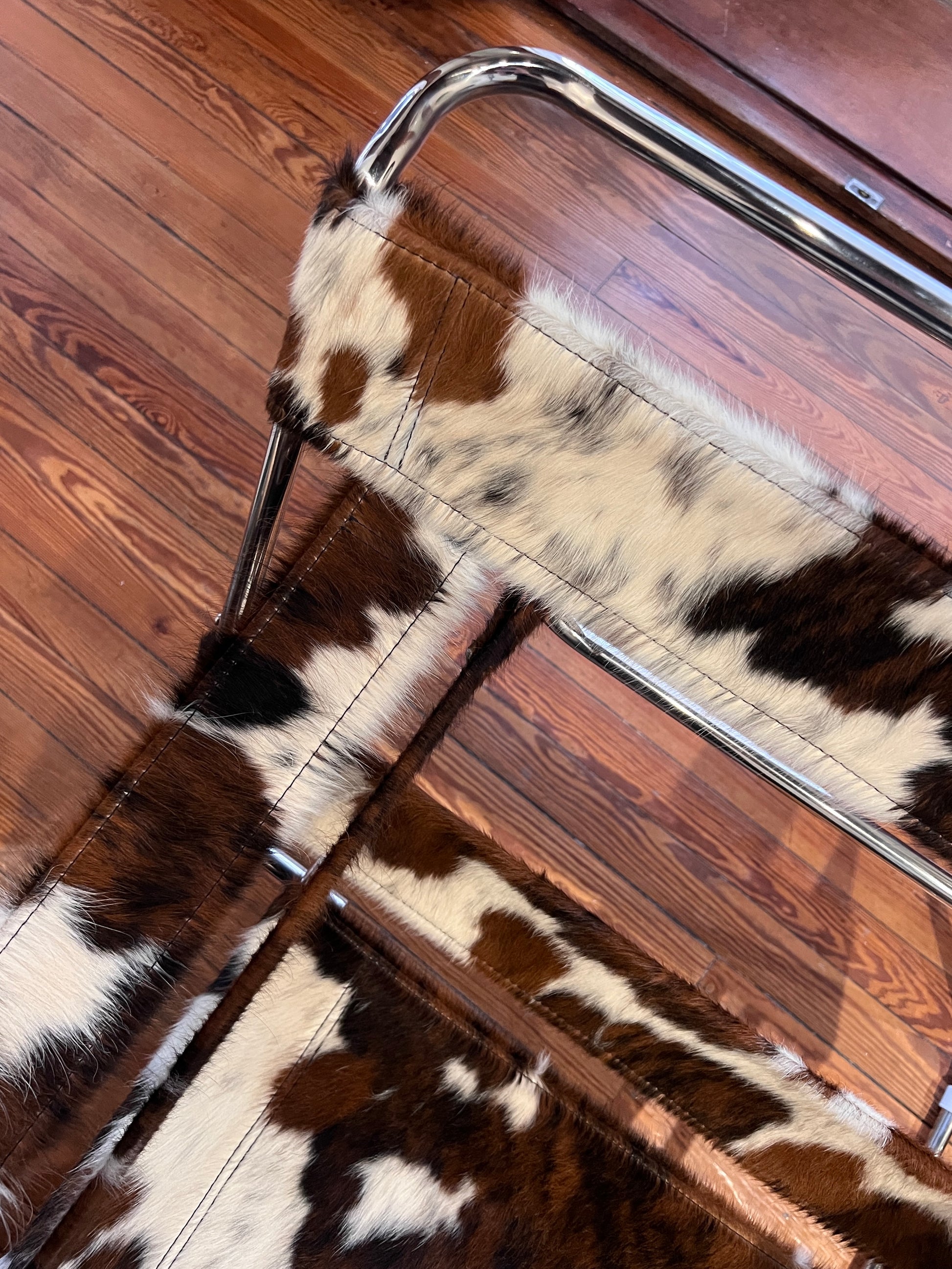 Materiales: Estructura de acero cromado, tapizado en cuero genuino, eco cuero o pelo